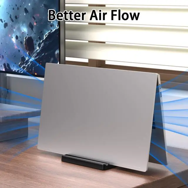 Save Space: Vertical Laptop Stand can accommodate up to 3 devices simultaneously, including a laptop and either a phone or an iPad. The laptop stand is highly suitable for conserving space and creating a neat and organized space on the desk.