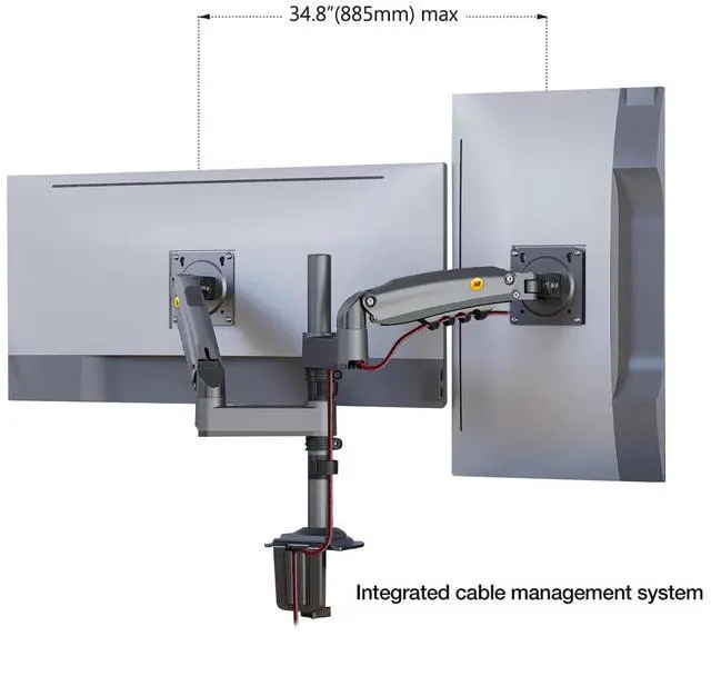 Double monitor arms free up more space of your desk, reduce switch of screens and add flexibility of your viewing angle.
