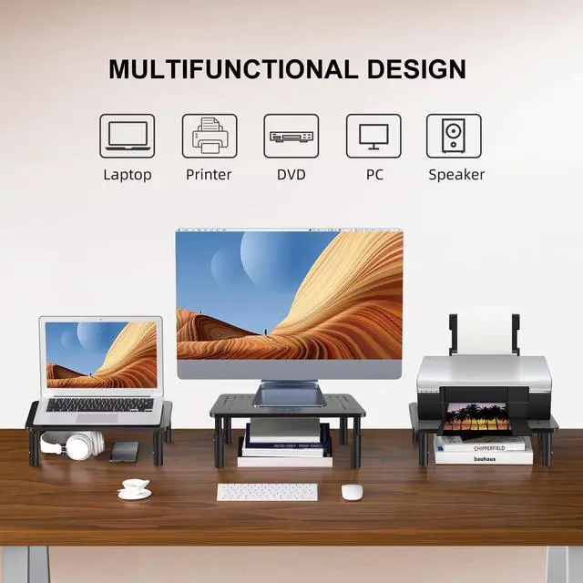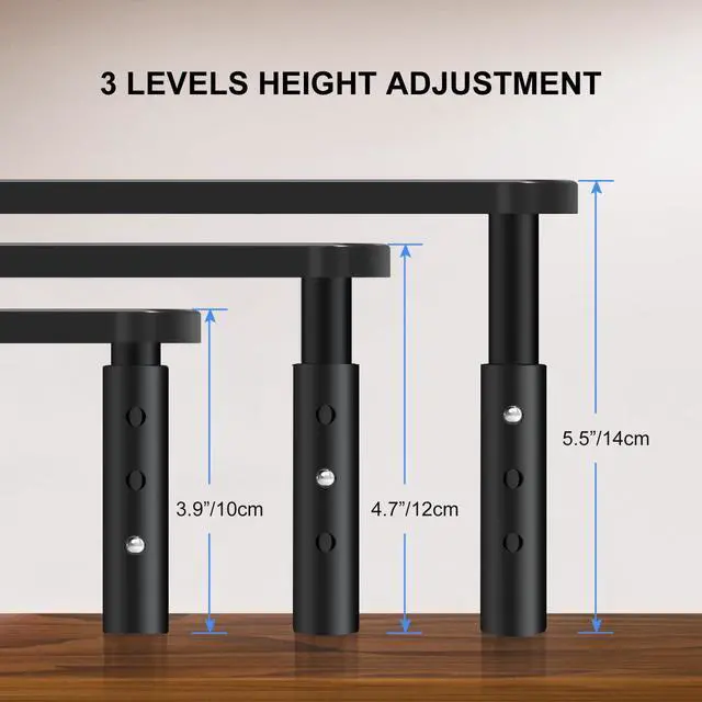 The 3-level height adjustable monitor stand can raise your computer screen to eye level, relieve neck, back and shoulder pressure, keep your screen at a comfortable eye level, effectively improve posture, relieve eyestrain and back and neck pain.