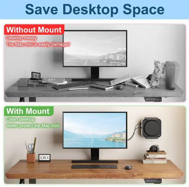 ---Versatile Mounting Options---The bracket for Mac mini can be installed behind a monitor, under a desk, or on a wall, offering flexible and easy installation to meet various needs