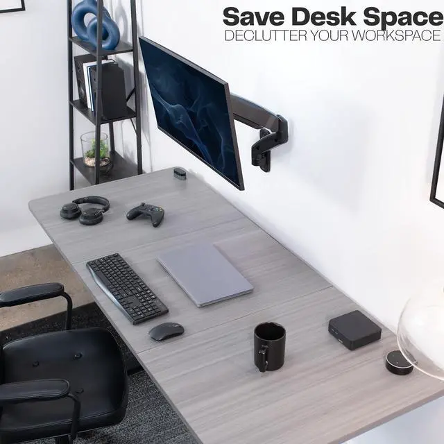 Clear up valuable desk space with this single monitor mechanical spring wall mount. The mechanical spring extended arm allows for simple height adjustment without the use of tools and features articulation for setting the monitor to almost any viewing angle. Comes with hardware for an easy mounting process
