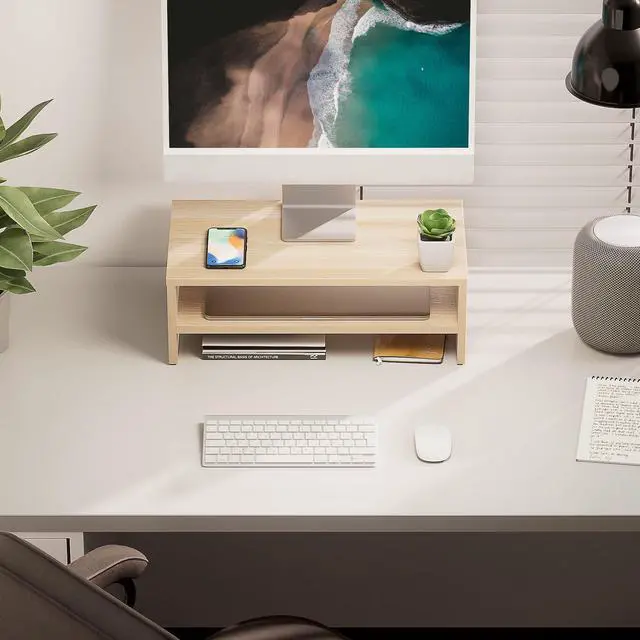 2 Tiers for Desk OrganizationExtra storage space while improving the height of your computer display. They are spacious enough to hold some of your larger sized things such as books, tablets. The storage of small stuffs is not even a problem.