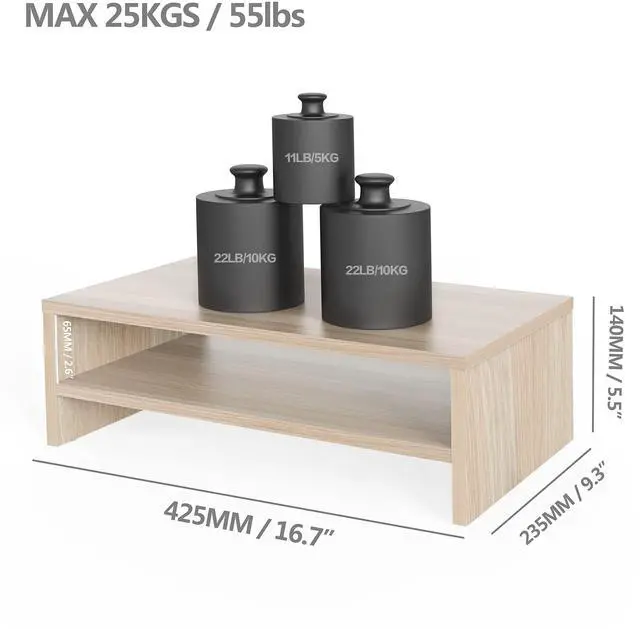 Anti-slip Legs for Stable StandThe laptop monitor stand is made of 15mm MDF for a beautiful appearance and easy to keep clean. Rubber skids on the bottom of the legs prevent the stand from sliding freely. Tough enough for printers, laptop, desktop or any other type of heavy equipment.