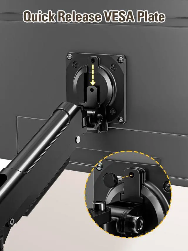Easy Installation: This monitor stand supports both C-clamp and grommet base installation methods, suitable for desk thicknesses ranging from 0.39 "to 2.76". Quick release VESA plate design allows for easy installation and disassembly. All hardware included for quick setup. US-based customer service is available 7 days a week to resolve any issues.