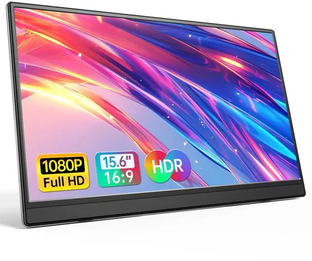 Portable Monitor 15.6 Inch 1080P USB-C HDMI Ultra-Slim Travel Monitor with Kickstand, for Laptop, PC, Mac Phone, PS, Xbox, Swich IPS Ultra-Thin Zero Frame Gaming