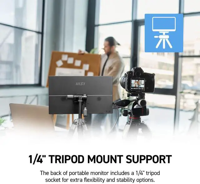 The back of portable monitor includes a 1/4" tripod socket for extra flexibility and stability options.