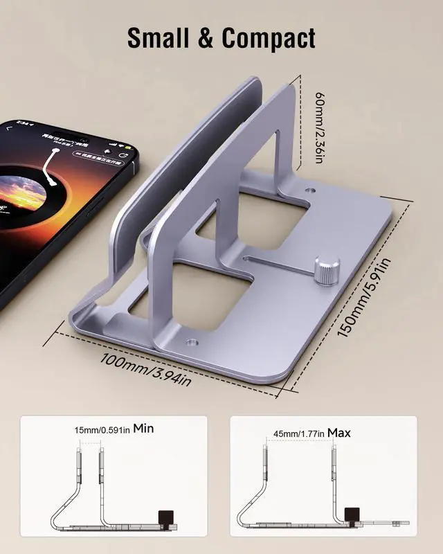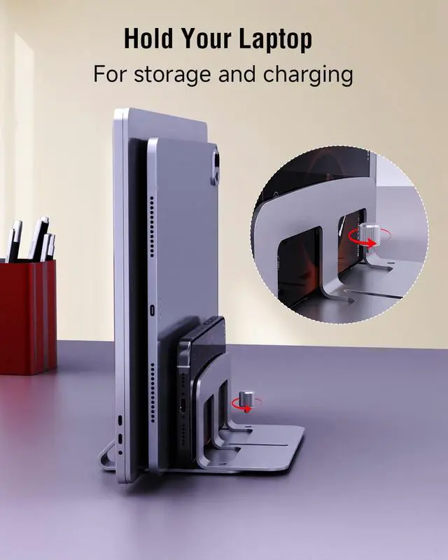 Adjustable Width: The laptop holder stand has extensible slot, which fits laptop with thickness from 0.55" to 1.81". Simply twist screw, the vertical laptop stand is compatible with MacBook Air, MacBook Pro, Mac Mini Series, HP Notebook, Dell Chromebook, ThinkPad up to 17.3"
