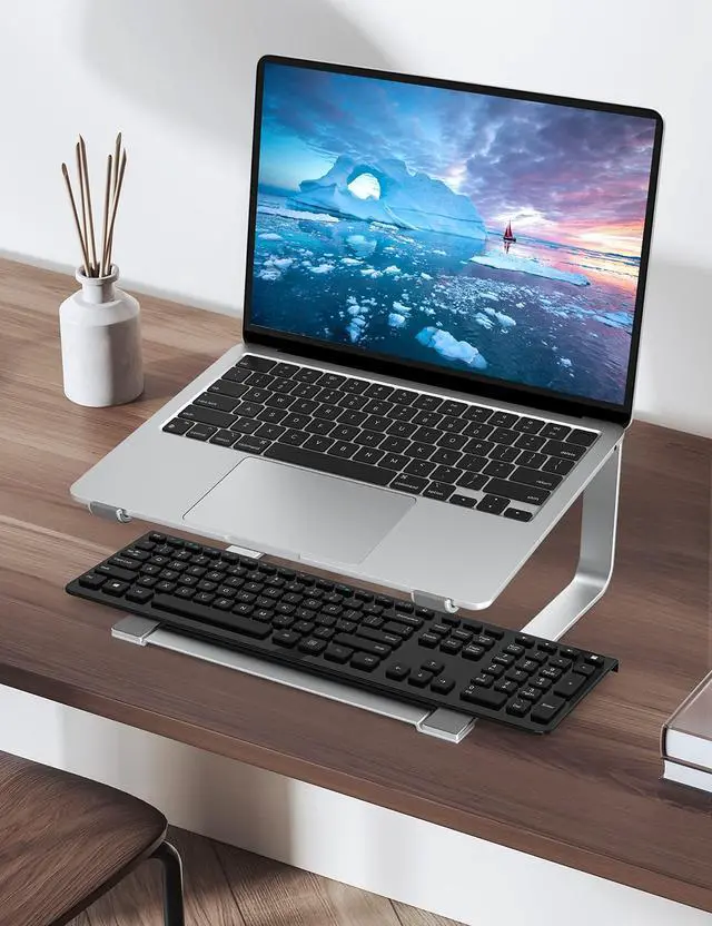 For the best ergonomic experience, we recommend using an external keyboard. This stand elevates your screen 6 inches to eye level to correct posture, serving as a heavy and stable monitor riser to significantly reduce neck strain.