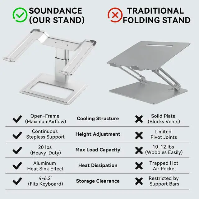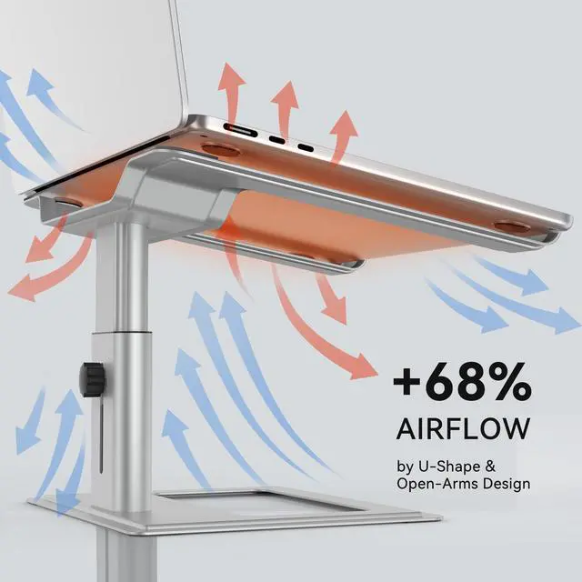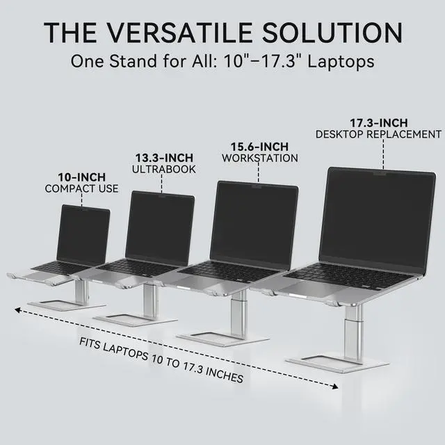 Built with high-strength aluminum, it supports up to 20 lbs and fits devices from 10 to 17.3 inches. Anti-slip silicone pads and a protective front lip provide a firm grip, ensuring a stable experience without wobbling or sliding.