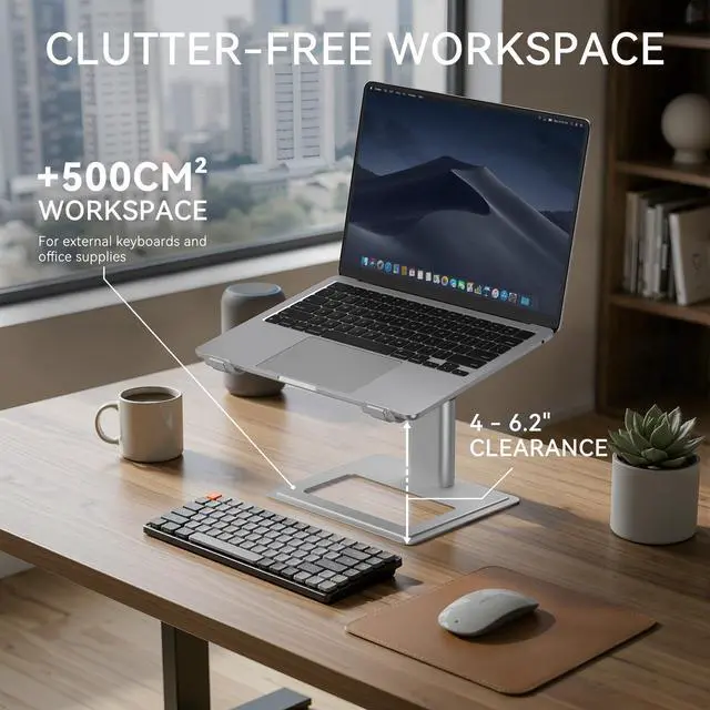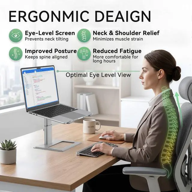 With an adjustable height range of 5.7 to 8.6 inches, it elevates the screen to eye level. This design assists in maintaining an upright sitting position, supporting a more comfortable environment during extended hours of work or study.