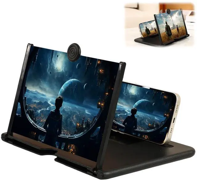 Screen Magnifier Version, 2026 New 3D HD Foldable Amplifier Phone Stand with Adjustable Angle Gift for Mom Dad Family Portable Universal Enlarger Movies Gaming Video(Black, 12 inch)