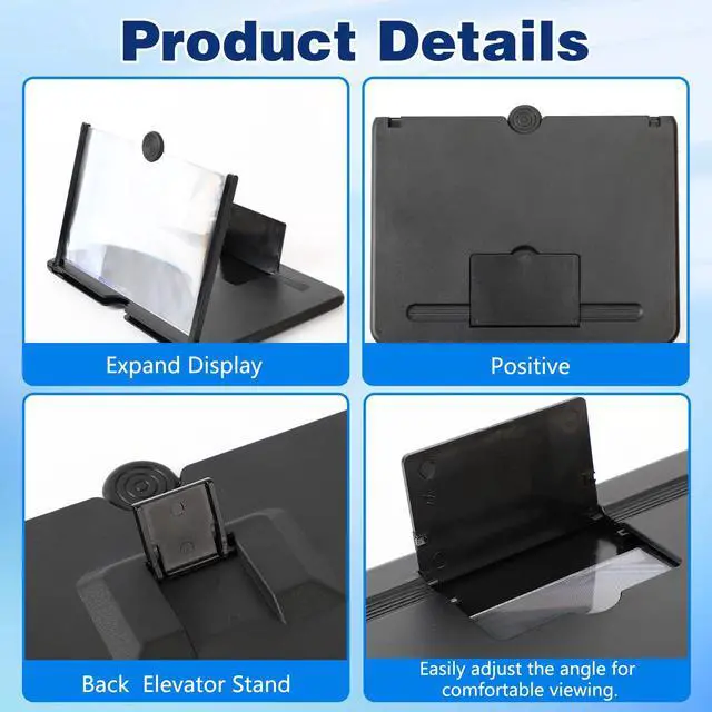 Stable, safe, and adjustable viewing angle: Engineered for a secure experience, every magnifier features an anti-slip phone slot to prevent your device from falling. The adjustable feet at the bottom allow you to find the perfect viewing angle for maximum comfort and stability on any flat surface.