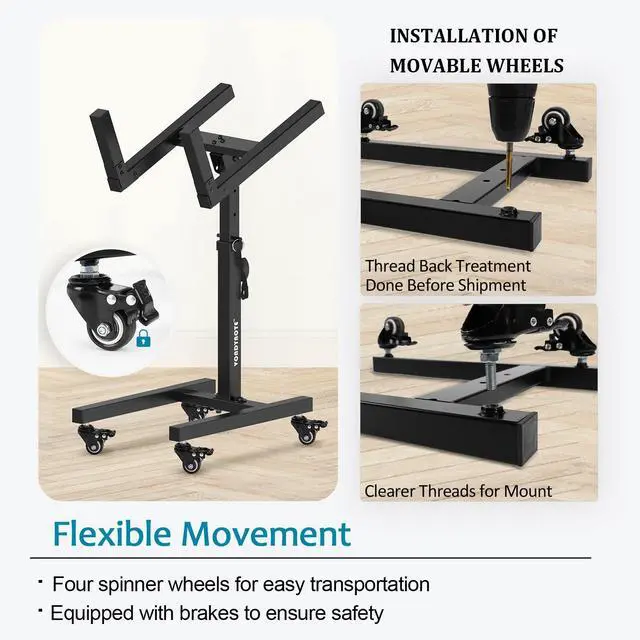 Four spinner wheels for easy transportation. Equipped with brakes to ensure safety.