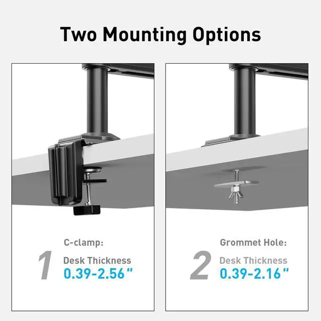 Versatile Mounting Option: Itoffers two mounting options: clamp and grommet, suitable for desks 0.39" to 3.54" thick. We recommend solid wood or metal desks and do not suggest glass desks. Clear instructions are included for easy assemblybe sure to tighten all screws and follow the steps carefully.