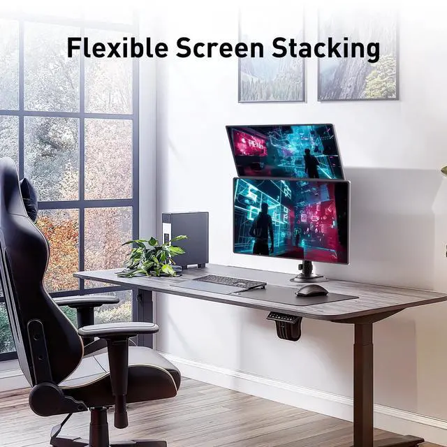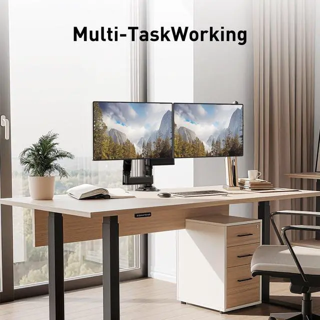 Enhanced Height Adjustment: The dual monitor mount features an extra 17-inch column, allowing the monitor height to be raised up to 25.19". This added height option is perfect for those who prefer a higher viewing angle or have a taller stature, offering more flexibility to reduce discomfort during long hours of work.