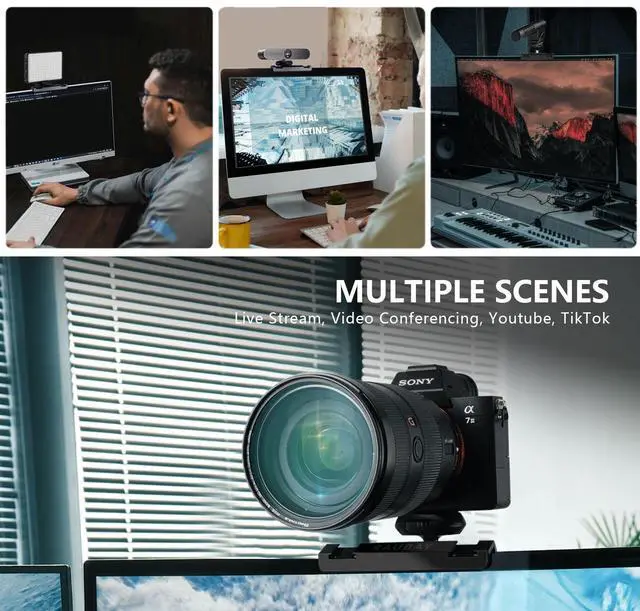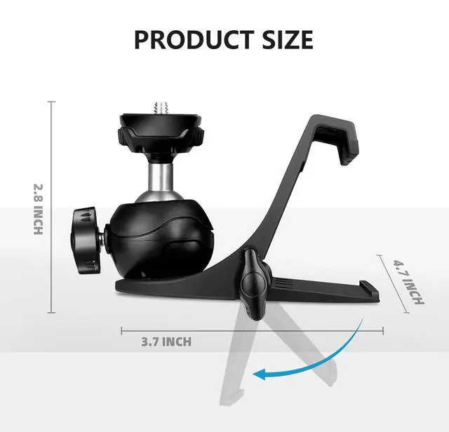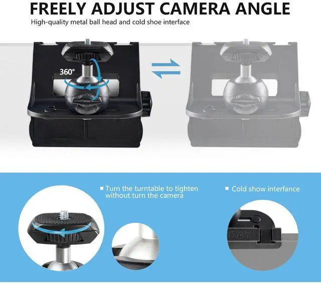 Flexible & high quality: The computer screen top camera stand can position adjust by moving horizontally on the computer screen. The angle of the camera can also be controlled by the 360° ball head. The ball head is made of metal with special threads, better load-bearing capacity.