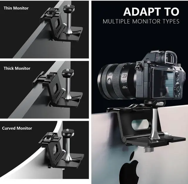 Save Space: The camera holder for monitor saves desktop space, there is no need to worry about the stability of the tripod. It is also convenient to carry and store.