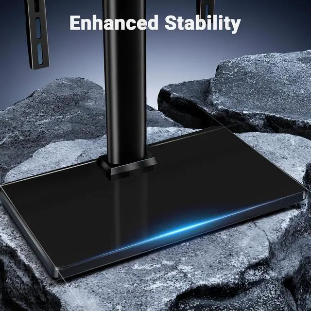 Sturdy & Durable Design: The TV stand is crafted from heavy-duty steel with a thick 8mm 14.17 x 9.06 tempered glass base to support up to 99 lbs of weight. You can trust this TV stand base to remain stable and wobble-free even when adjusting the screen angle from one side to the other.
