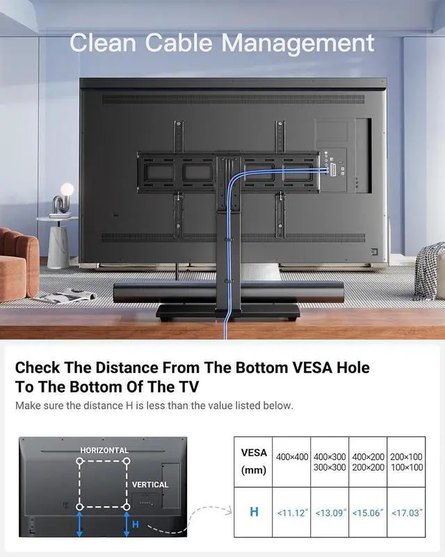 Swivels 60° To Find The Best Viewing PositionThis swivel tv stand is designed with the function that conveniently swivel 30° right or left. This universal tv stand with mount allow you to easily choose the healthiest viewing position available and watch TV no matter where you are in your family room. Customize your home theater experience.