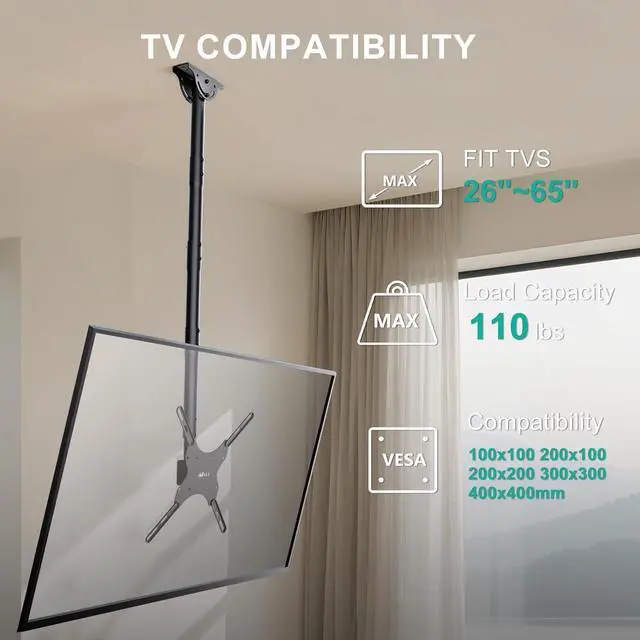 Compatibility: Long Arm tv mount fits most displays up to 65 inch, 110 lbs.