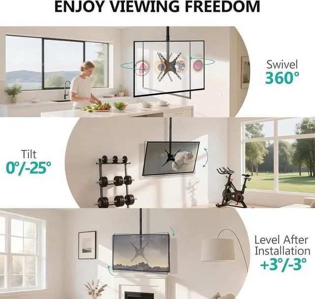 Package Includes: TV Ceiling Mount x 1, Mounting Hardware Kit x 1, User Manual, experienced and friendly US based customer support available to assist 7 days a week.