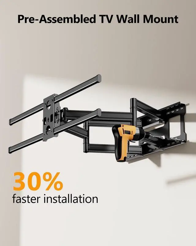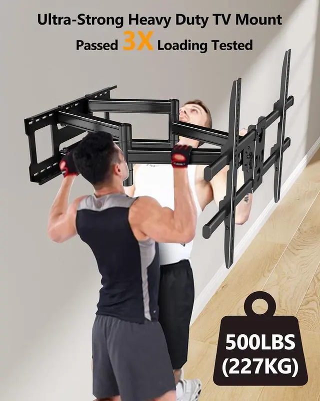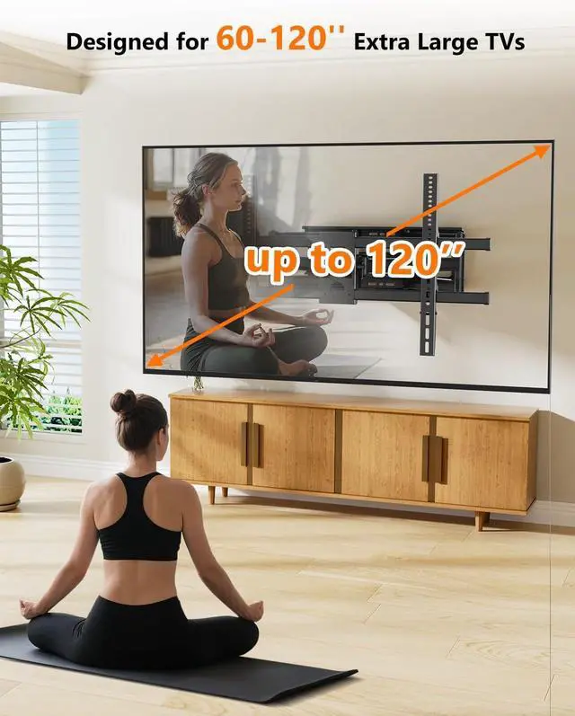Big Size TV: Our sturdy full motion TV wall mount was specifically designed for the largest TVs on the market. Crafted from high-strength steel with heavy-duty dual arms that will prevent the TV from sagging when extended. No matter where you plan to hang your TV, and this 100 inch tv wall mount will be the perfect choice since it has dual articulating arms which means more stable construction and supports 275lbs tvs.