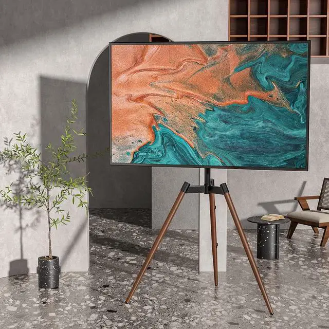 FASHIONABLE DESIGN & SPACE-SAVING: Crafted with a sleek and stylish design, our easel TV stand blends seamlessly with American aesthetics; Perfectly adaptable to any style, it effortlessly complements your small home decor; Its aesthetic appeal goes hand in hand with its practicality, taking up minimal space; Place it in any corner with confidence, as it beautifully combines form and function for a chic and space-saving solution