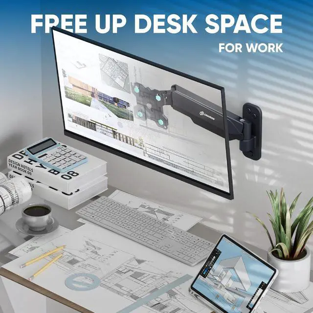 Ergonomic Wall Mounted Solution Proper screen positioning with a wall mounted monitor arm helps reduce neck strain and eye fatigue. Hanging monitor mount on the wall frees up desk space and keeps the display at eye level, making daily work with a PC monitor wall mount more comfortable.