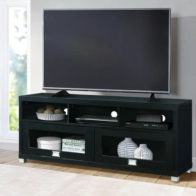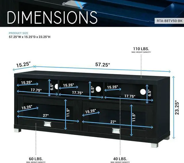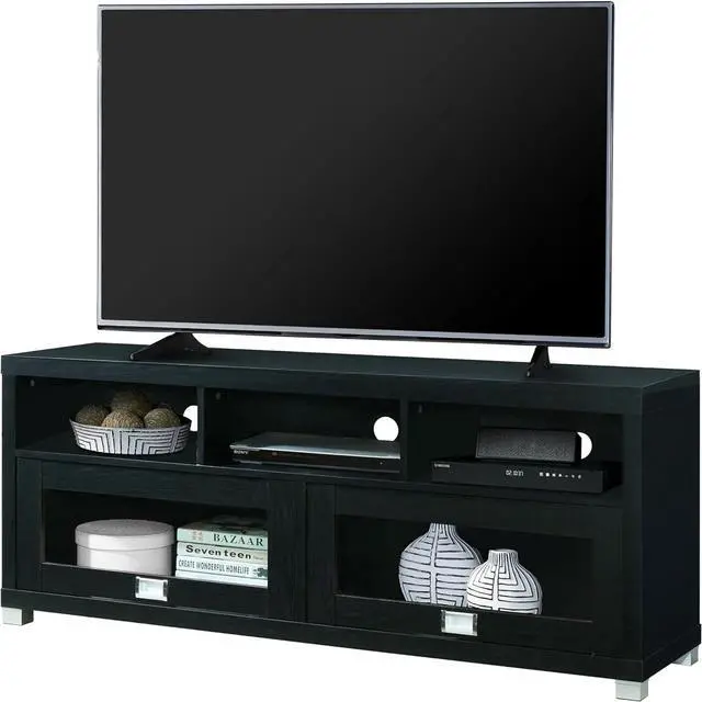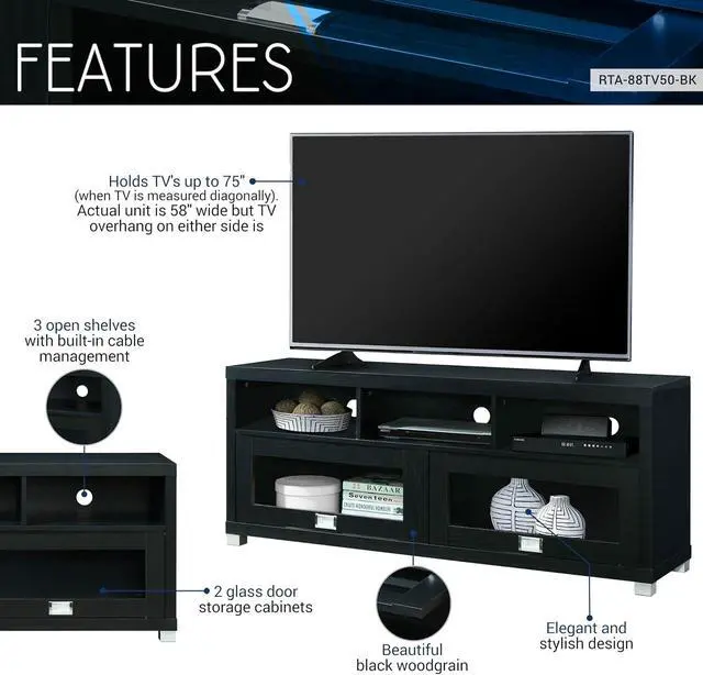 Maximize Your Space: We designed our slim tv stand for living room storage organization. Our media stand features under TV cabinet storages, and shelves with back panel openings. Save more space with our TV cabinets with doors and shelves.