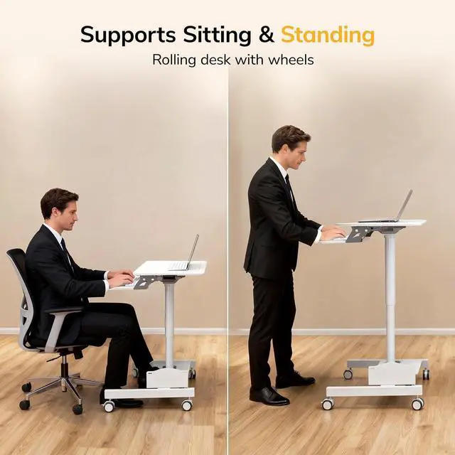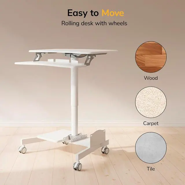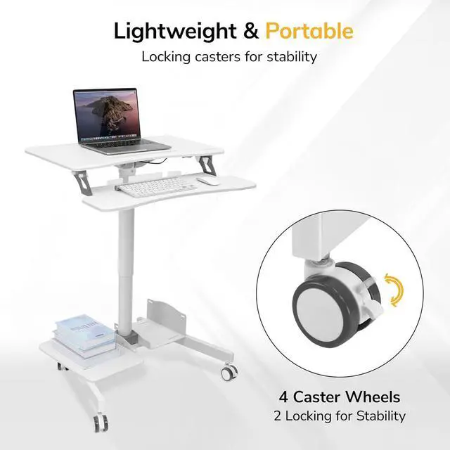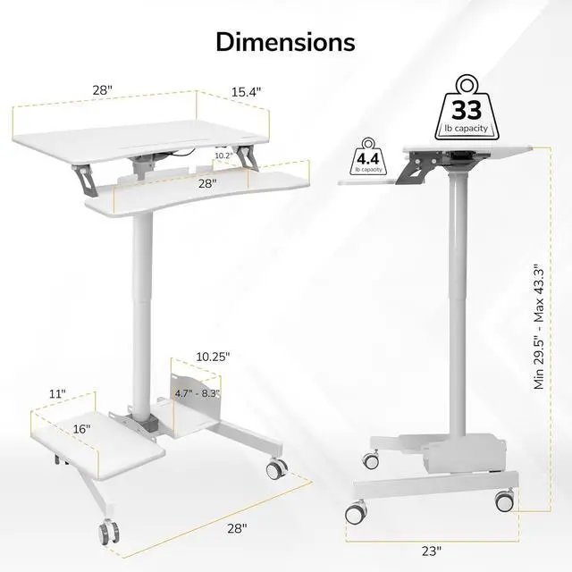 Ergonomic height adjustment for healthier posture Gas-spring assisted lift adjusts from 29.5 " to 43.3 ", letting you sit or stand comfortably throughout the day. Perfect for charting, presenting, typing, or laptop use while reducing back and neck strain.