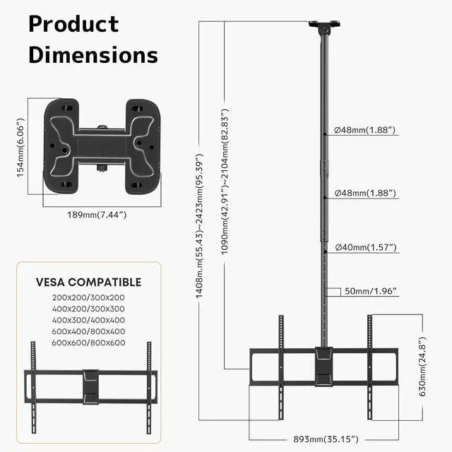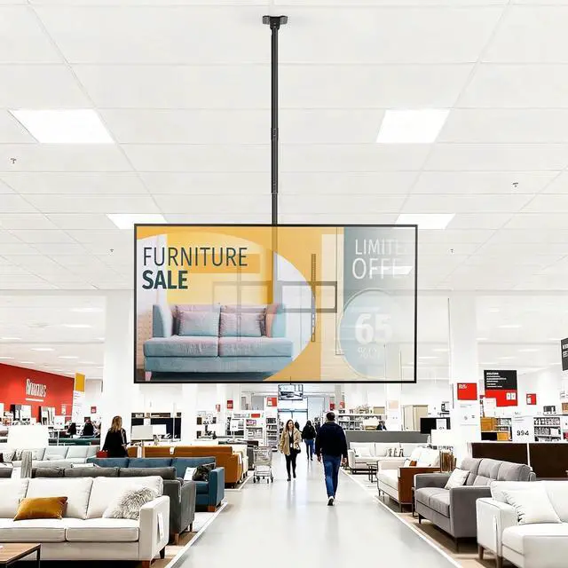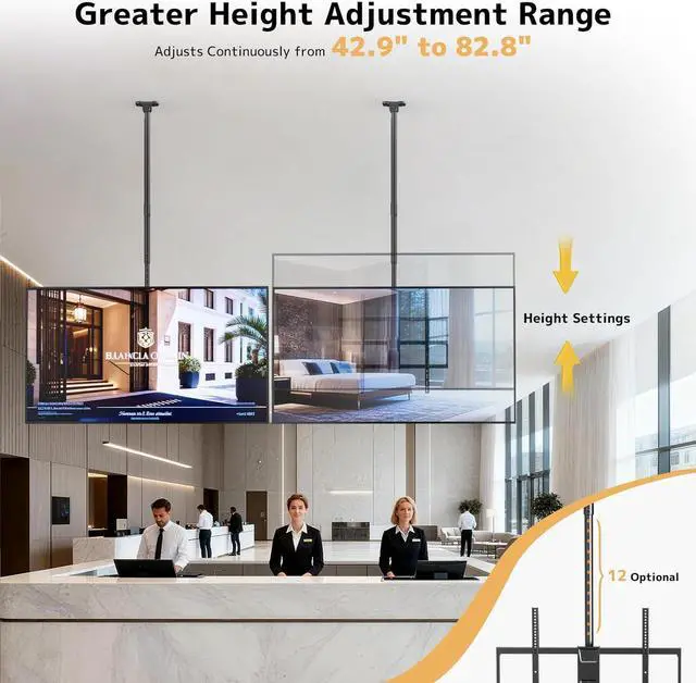 Professional-Grade Solution for Large Commercial Spaces Ideal for expansive business environments requiring flexible TV positioning, this mount excels in sports bars, hotel lobbies, conference rooms, fitness centers, and retail stores. Its 42.9 - 82.8 " vertical range accommodates vaulted ceilings in airport lounges and exhibition halls, while the 176lbs capacity securely holds oversized commercial displays
