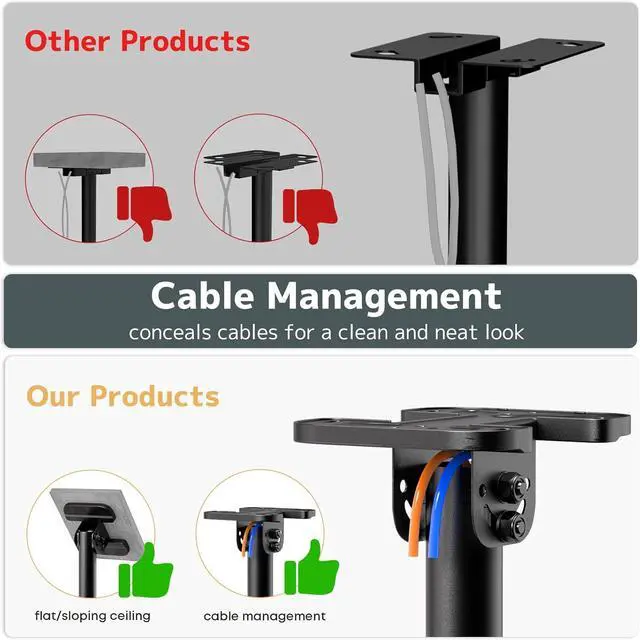 360 Degree Rotation and Adjustable Height: Enjoy smooth 180 degree swivel and -25 to +3 degree tilt for flexible viewing angles. The adjustable pole extends from 42.9 to 82.8 inches, making it suitable for high ceilings and sloped roofs without complex installation