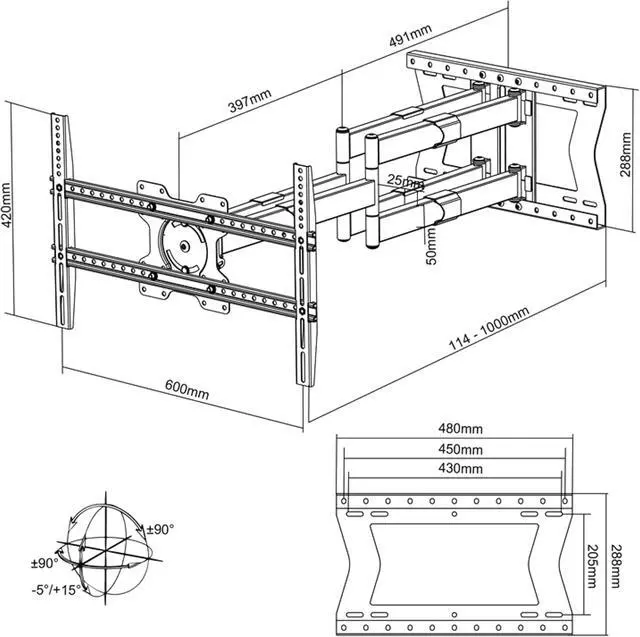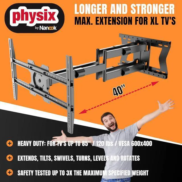LONGER & STRONGER - Extra long full motion TV wall mount with a truly impressive reach and excellent robustness. Compared to conventional TV mounts it gives you so much more freedom to position your TV, both when in use, as well as when stored against the wall.