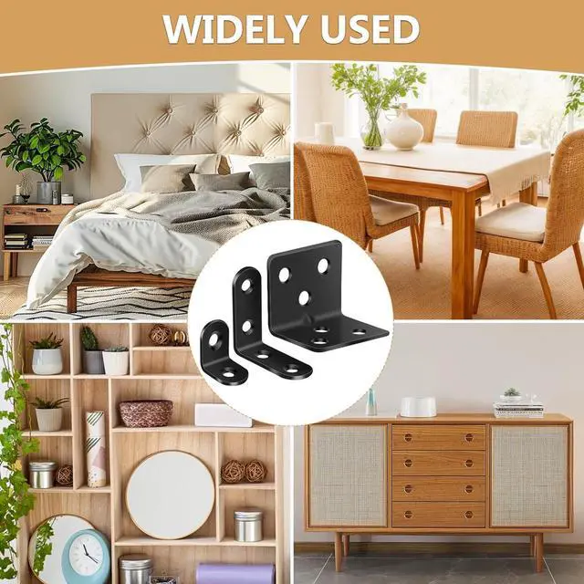 Wide Application These metal brackets are perfect for reinforcing right-angle joints making you easily fix wobbly furniture and also perfect for quick DIY projects such as bookcases cabinets tables chairs shelves shoe racks drawers headboards photo frames hangers dressers garden fences etc. If you are a DIY furniture craftsman you must have one! These stands are beautifully finished in black and have slanted ends which adds a sense of style and premium to DIY projects.