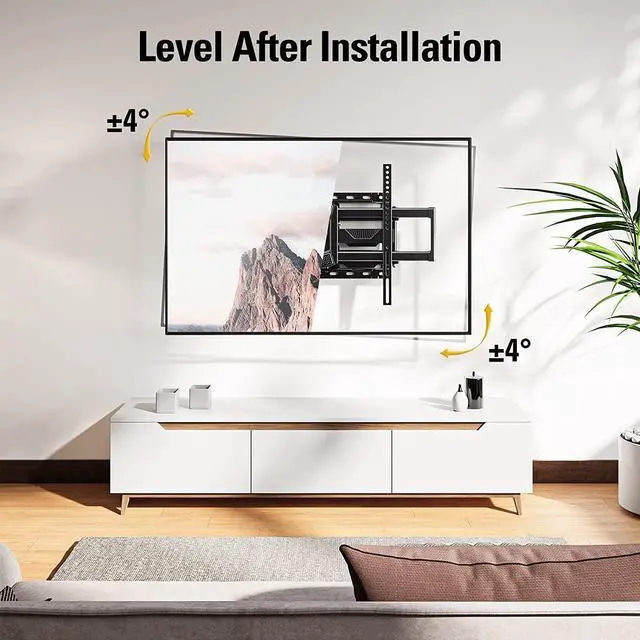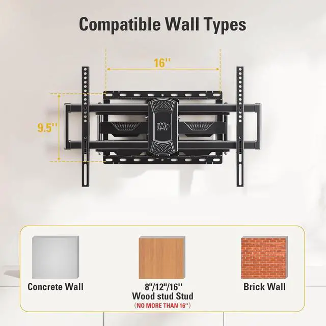 Please Note: This TV mounting bracket is NOT for drywall alone installation! [Intriguing Flexibility] This full motion TV mount tilts the TV 5° up and 15° down to avoid glare and swivels the TV left or right according to your seat position. It pulls out to 16.6 inches and retracts to 2.5 inches allowing your TV to move. After installation +/-4° post-installation adjustment allows for optimum TV leveling. [Sturdy and Safe] Mounting Dream TV wall mount swivel and tilt designed with 6 articulating arms. The Wall mount for TV is constructed of high-quality cold-formed steel for the ultimate safety and reliability to keep your TV and family safe. [Hassle Less Installation] Mounting Dream wall mounts comes with clear instructions and all hardware in pre-labeled bags. The paper template and 4 cable clips are good helpers to make the installation easier and quicker. Concrete anchors can be provided upon request (Anchor