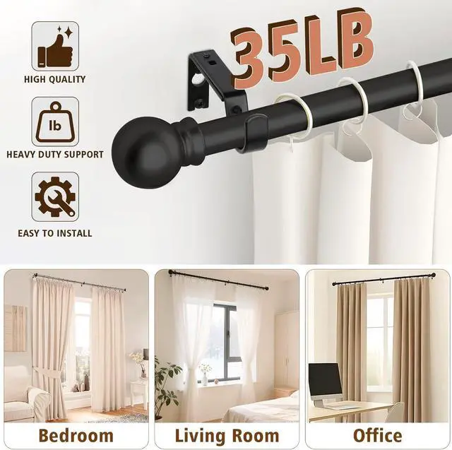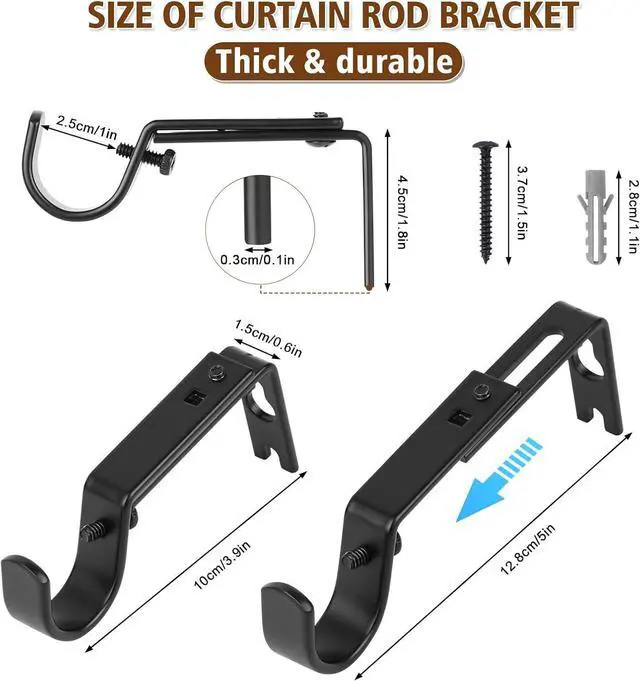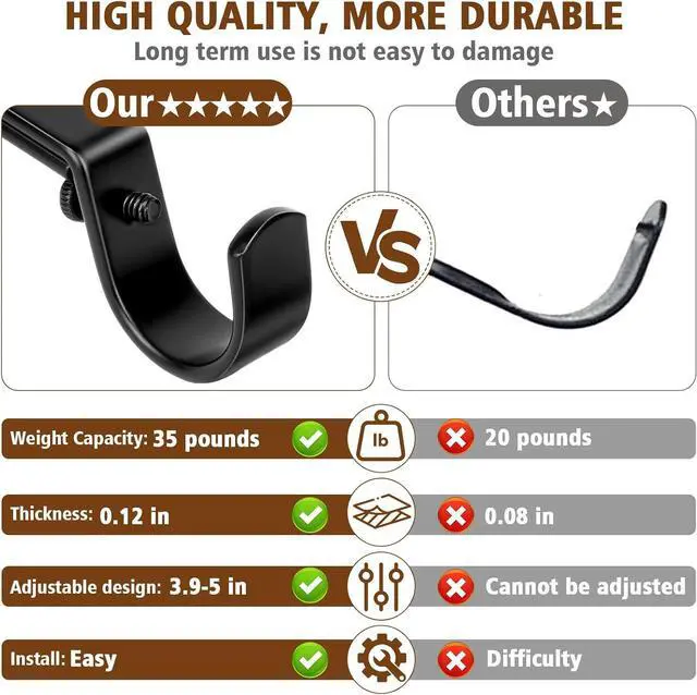 HEAVY DUTY IRON CONSTRUCTION: Crafted from thickened 0.12 reinforced iron construction these heavy-duty curtain rod holders support up to 35 lbs without bending or sagging providing reliable stability for blackout curtains heavy drapes and window treatment hardware systemsUNIVERSAL