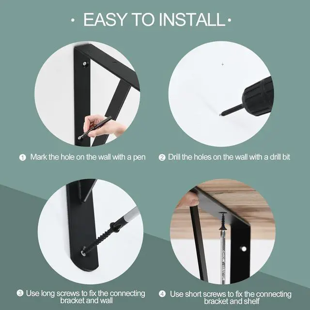 Package included: 12 x Brackets 36 x long Screws 36 x short Screws (Wood plank is Not included) Our floating shelf brackets come with 12 brackets for your wall mounted shelves. Our heavy-duty brackets can support Audio Equipment bookshelf kitchen ware electric power tools TV bench farm tools etc.