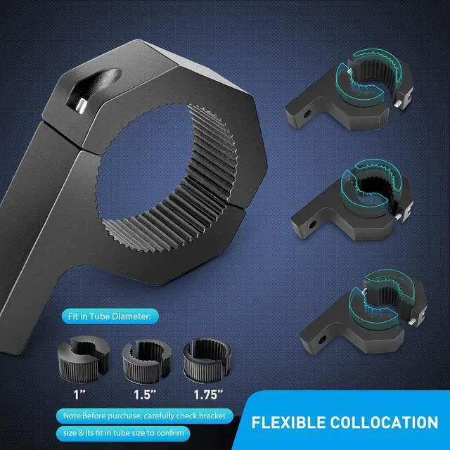 Sturdy bracket: strong aluminum alloy fix the light on tube firmly raise the light bar height to avoid scratches while drivingUseful rubber: high quality rubber inserts dampen driving vibration and avoid scraping bull bar surfacewide application: can be used on tubes of 1 inch 1-1/2 inch 1-3/4 inch& 2 inch diameter and applied to led light bar for almost all kinds of vehicleEasy installation: pre-drilled hole allows more lights to be added to vehicle without drilling Allen hex key included for quick installationPackage includes: 4 PCs led light bar mounting bracket