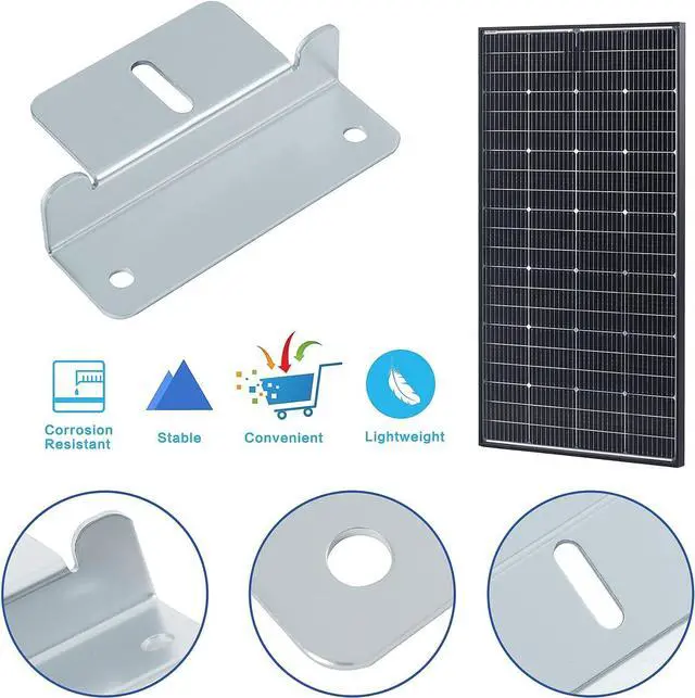[Various Application] JJN solar panel Z brackets are suitable for the installation of single solar panels from 50W to 150W on flat roofs RVs boat decks and camping houses. This Z-bracket can be used with solar panels that have mounting holes. [Durable and Lightweight] JJN solar panel mounting brackets is made of aluminum alloy. which is high-strength corrosion-resistant and not easy to bend. performs well in all weather conditions! [Easy to Install] The solar panel bracket package includes all screws nuts and washers required for solar panel installation. The installation process is very simple and easy to install and removal.