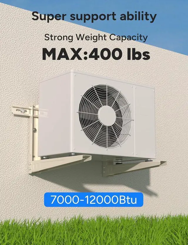 Strong Weight Capacity: This air conditioner wall bracket can support up to 400 (490) pounds and is suitable for 7000-12000 BTU air conditioners(universal mini split ductless air conditioner heat pumps AC compressors & HVAC systems) allowing your air conditioner to be safely and stably mounted on the wallStable