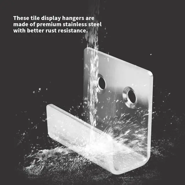 Material-These tile display hangers are made of premium stainless steel with better rust resistance. Pack of 6-Sold in pack of 6pcs of hanger. Come with screws. Application-Used widely for hanging ceramic tile board or other general use. Heavy Duty-Each can bear about 25kg weight only those be mounted under the tile can bear weight. Brushed Surface-Brushed finish build to resist daily corrosion scatches and tarnishing.