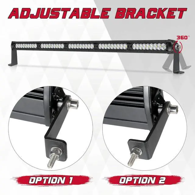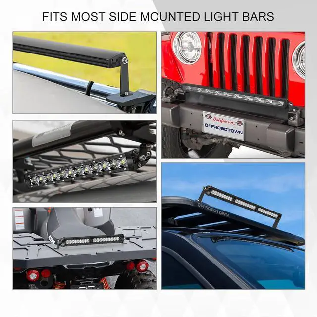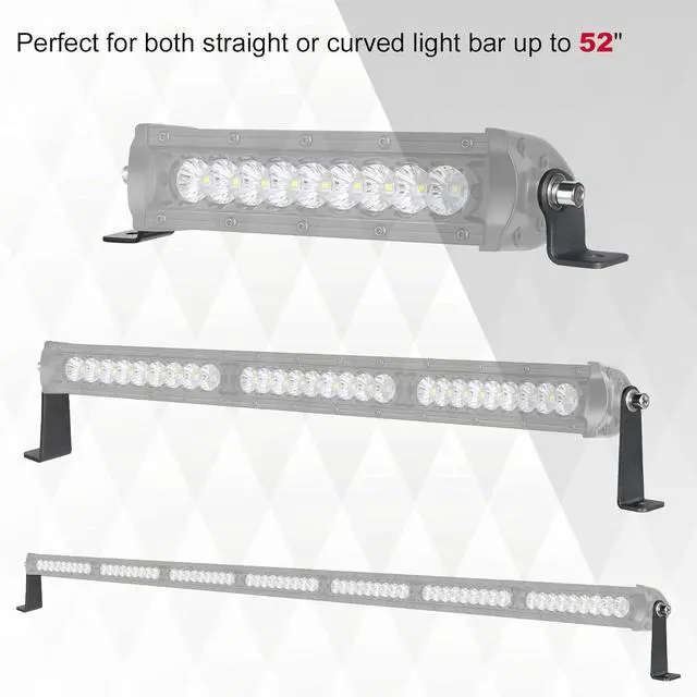 Make your LED lights bar more stable and no vibration - even when braking suddenly or driving over speed bumps and rough mountain roads. WIDE APPLICATION - Compatible with most of side mounted light bar and perfect for both straight or curved light bar up even to 52 inch. The universal light bar mounting brackets can be widely applied to Offroad Jeep 4x4 ATV UTV SUV Truck Car Pick-up Sand Rail Fork Lift Golf Cart and Boat. EASY INSTALLTION - Completed installation accessories. 2 install ways (front/reverse) for different mounting application. Angle-adjustable side mounted brackets allow it to achieve lights optimal angle you need and change direction of lights easily.