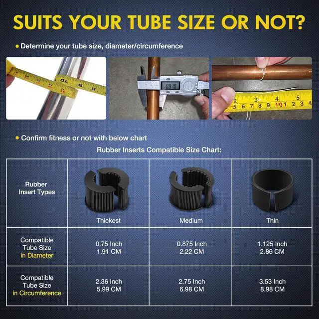 Fit Rubber Inserts: Rubber inserts/strip are designed with rubber teeth that can fit perfectly and grip securely with the thread of inside clamp. Making installation easier and always protecting the metal from being worn downBuilt