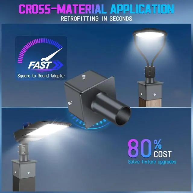 QUICK-CONVERTER POLE ADAPTER: Featuring a 2-3/8 vertical tenon and universal slide fit design easily and seamlessly installs 5 square poles into round fixtures so your old lights don't collect dust in the cornersLONG