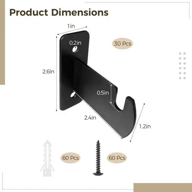 Complete Set: Includes 30 gridwall mount brackets 60 screws and 60 expansion tubes offering sufficient quantity to meet your daily use and replacement needs; the grids measure 2.4 in length and 0.5 in slot depth fitting for most grid wallsSturdy