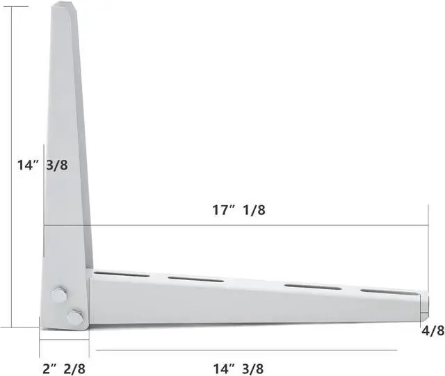 Universal Size - Our air conditioner support bracket is designed to fit mini split units heat pumps units and AC compressors ranging from 7000 - 15000 BTU. Its dimensions of 14 3/8 x 171/8 make it a versatile and hassle-free option for all applications. Sturdy and Durable - Our mini split wall mounting bracket is constructed with top-quality galvanized steel and finished with a rust-resistant powder coating ensuring it can support up to 300lbs of weight with ease. Superior Protection - The mini split mounting bracket lifts the AC unit off the ground preventing it from dirt debris snow leaves and floods ensuring the security of operation and long using life.