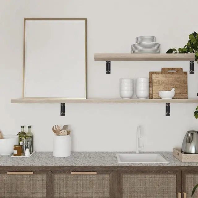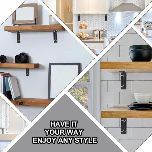 Then use a screwdriver to tighten the screw on the brackets. Simply attach a wood plank on top of these floating shelf brackets and you have a beautiful wall-mounted shelf. WIDE APPLICATION - This shelf bracket can be used in many different places such as shelf brackets on tables flat seams window furniture etc. Great for open shelves in the kitchen pantry bars bedrooms offices hotels and restaurants.