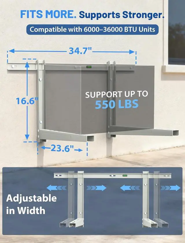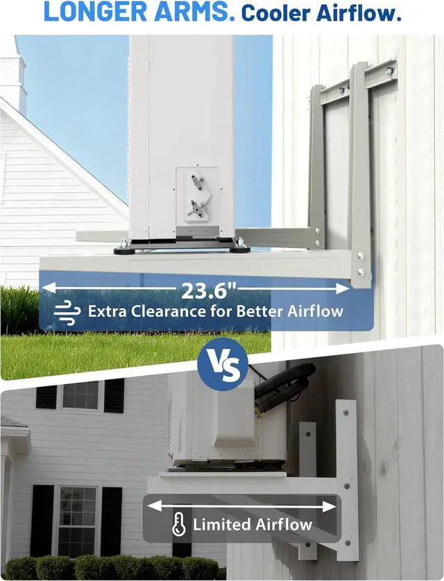 Weather-Resistant & Durable: Crafted from heavy-duty galvanized steel with a weight capacity of 550 lbs SMOQIO mini split bracket is powder-coated for enhanced corrosion resistance anti-rusting and weather-proof. Designed specifically for harsh outdoor environments it delivers long-lasting reliable support for your mini-split AC system. Extra Clearance for