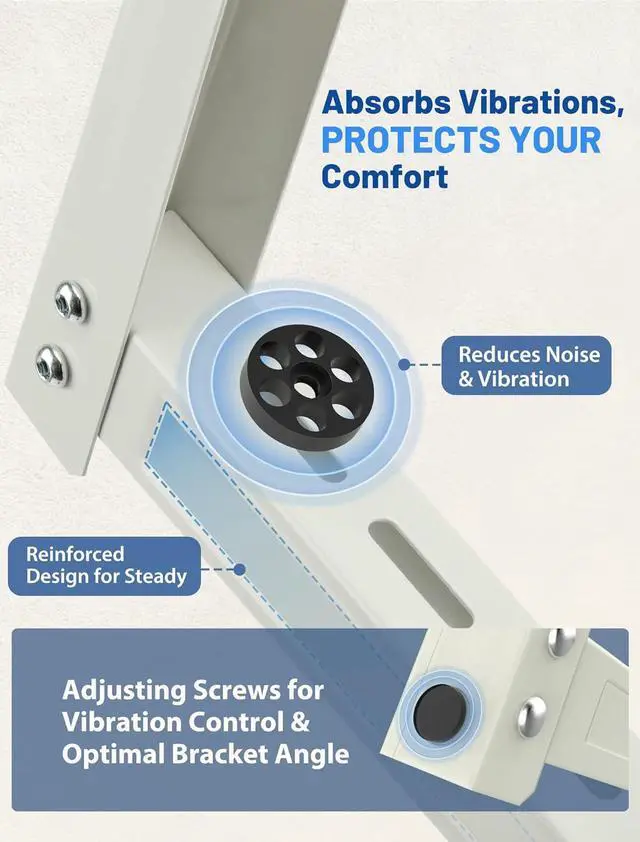 Condenser Protection & Anti-Vibration: SMOQIO mini split brackets for outside can keep your mini split elevated protect from dirt snow debris floods vandalism grass-clippings etc. Integrated anti-vibration pads significantly absorb operational noise and shock delivering a quieter and longer-lasting performance.
