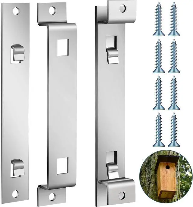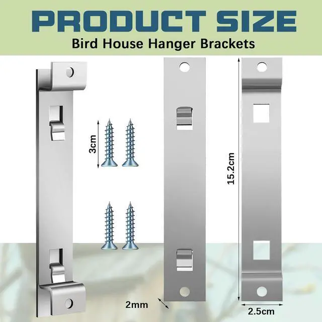 Install: each birdhouse hanger bracket is about 6 x 1 inches/ 15.2 x 2.5 cm in size about 0.08 inches/ 2 mm thick protrudes 1 inch when attached to the rear of a birdhouse; Fix the bracket (with hole design) to your desired surface; And fix the hanger (with raised part) to the back of your bird house then you can easily hang your bird house to where you wantQuickly Remove for